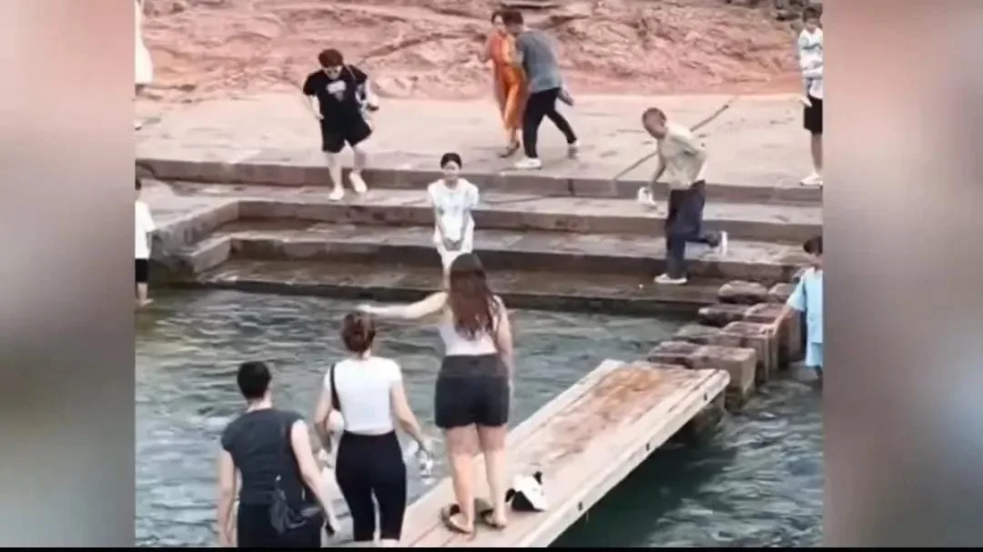 On a seemingly ordinary day in Fenghuang Ancient City, an extraordinary act of bravery unfolded that warmed the hearts of many. A young boy, playing near the river, was suddenly swept away by the current. Panic set in among onlookers, but amidst the chaos, a foreign woman standing on the bridge took swift action. Without hesitation, she plopped right into the rushing water to save the child. Her quick thinking and courage were nothing short of inspiring.