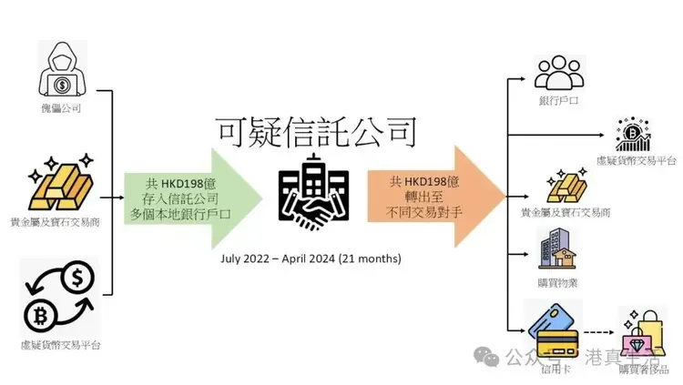 Authorities discovered that the triad had established a trust services company in 2021, which became a critical instrument for laundering funds. Over just 21 months—from 2022 to February 2024—the company processed deposits and withdrawals totaling approximately HKD 39.6 billion, suspected to be proceeds of crime.
