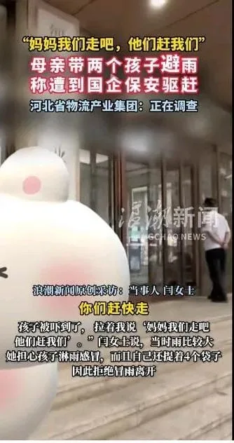 On August 12th, a video went viral that had people everywhere shaking their heads in disbelief. A mother, seeking refuge from an unexpected downpour, brought her children into the lobby of Hebei Provincial Logistics Industry Group. However, instead of compassion, she faced rudeness and was ordered to leave by security guards and a manager. Despite explaining she would leave once the rain stopped, she was still driven away. Honestly, can you imagine being turned away while your kids are drenched and vulnerable? It’s outrageous! 💦😡