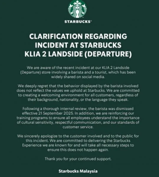 Starbucks Malaysia responded quickly and decisively. The female employee responsible was immediately dismissed, signaling the company’s zero-tolerance policy for disrespectful behavior towards customers. In their official statement, Starbucks admitted the incident contradicted their core values of respect and inclusivity. They also issued a heartfelt apology to the affected tourist and the public, aiming to restore faith in their commitment to quality service.